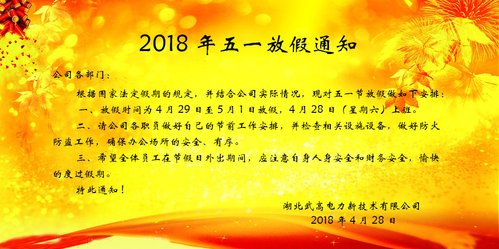 湖北武高電力“五一”放假通知