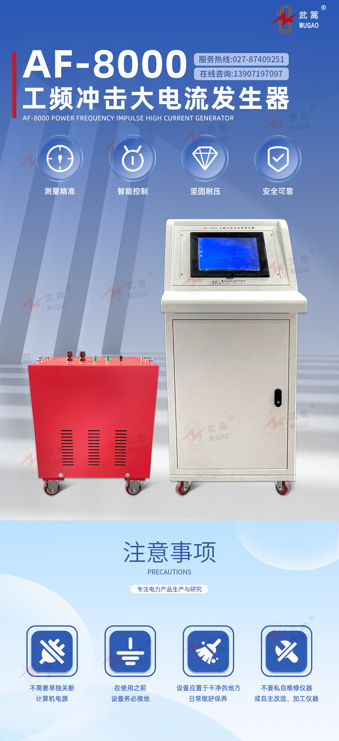 AF 系列工頻沖擊大電流發(fā)生器是電力、電氣行業(yè)在調(diào)試中需要大電流場(chǎng)所的必需設(shè)備,應(yīng)用于發(fā)電廠、變配電站、電器制造廠及科研院所等部門,屬于短時(shí)或斷續(xù)工作制,本大電流發(fā)生器采用PLC控制電路,連接工業(yè)電腦,可以進(jìn)行大電流沖擊試驗(yàn),并能生成“時(shí)間-電流”曲線,具有體積小、重量輕、使用維修方便等特點(diǎn)。