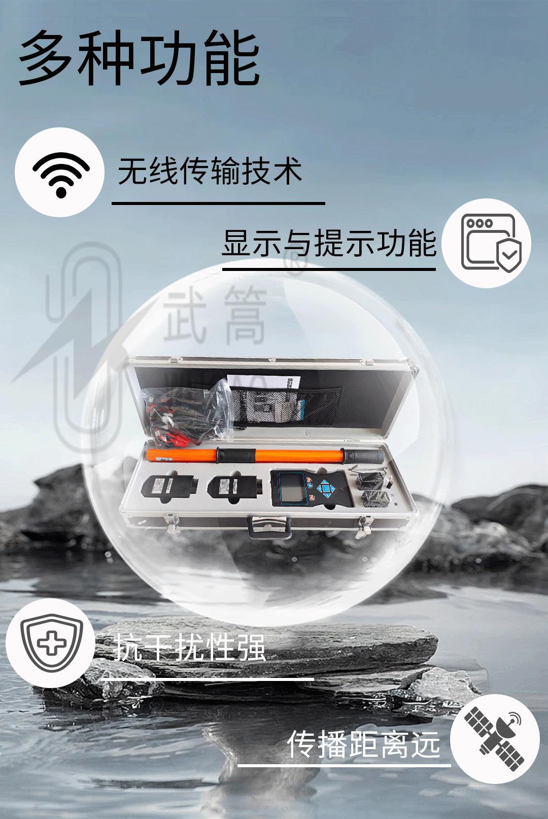 由無線接收器、探測器、伸縮絕緣桿等組成。