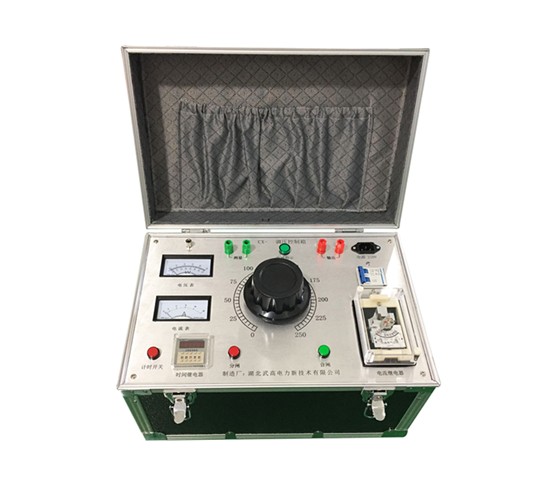 3、接通電源并合上面板刀閘,電源指示燈亮,預(yù)置時間繼電器至所需時間。并根據(jù)試品容量按控制箱(臺)電流整定參數(shù)合理設(shè)置試驗(yàn)電流值。此時調(diào)壓器應(yīng)回零位,如末回零控制箱(臺)將無法合閘。